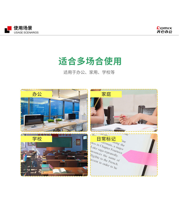 齐心 D6019 五色荧彩系列标签便笺贴 44*12mm 配色 100张/本 单位:本