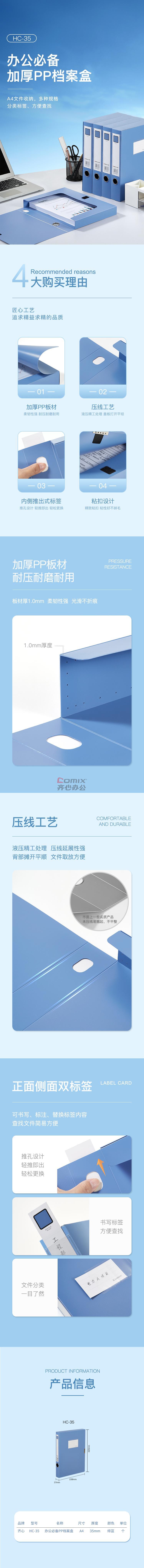 商品名称:齐心 HC-35 办公必备PP档案盒 A4 35mm 绯蓝 单位:个