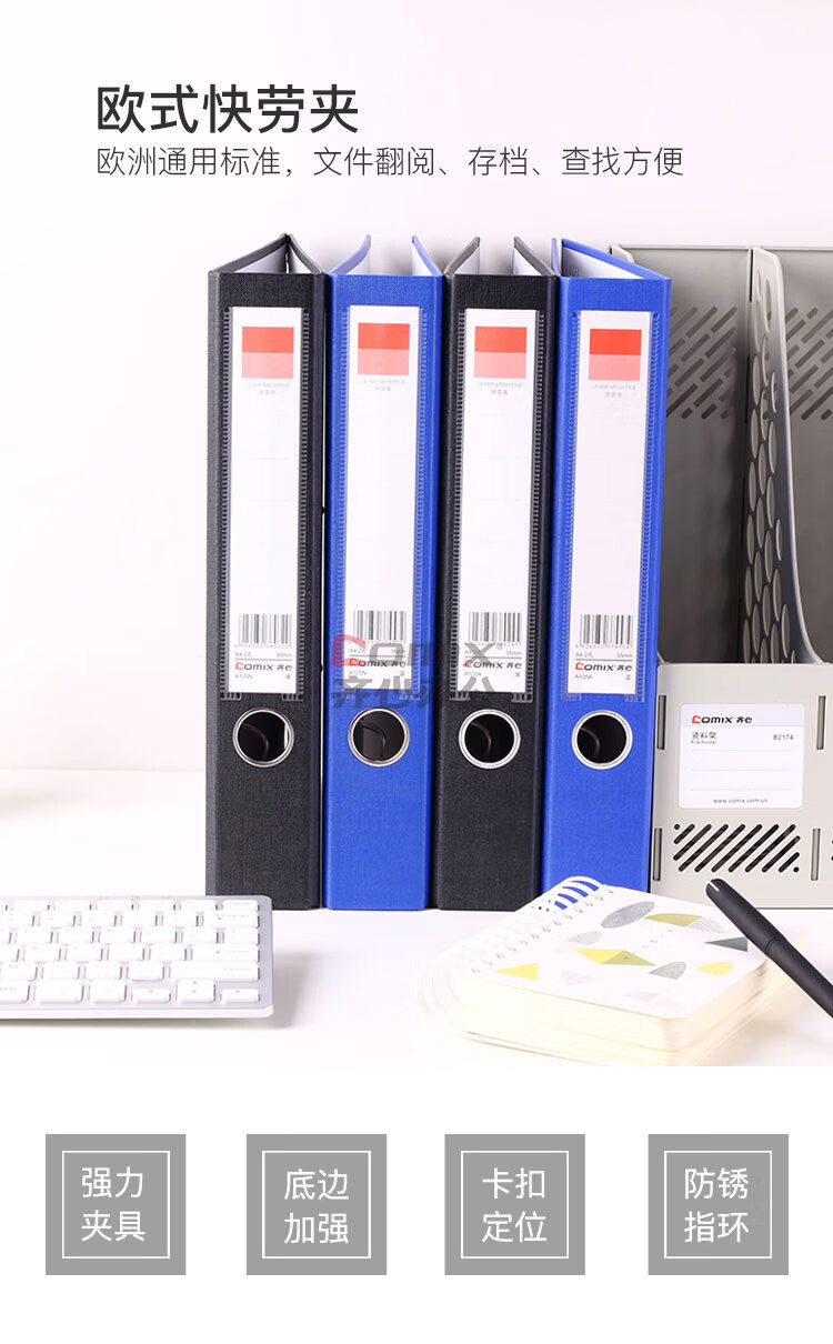 齐心 A106N 欧式档案夹 3寸 A4 蓝色 单位:个