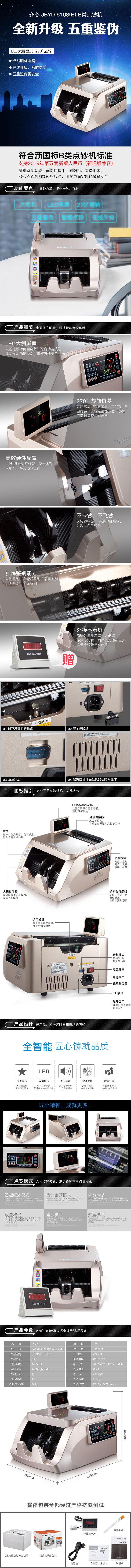 商品名称:齐心 JBYD-6168(B) 全智能红外B级点验钞机 香槟金 单位:台