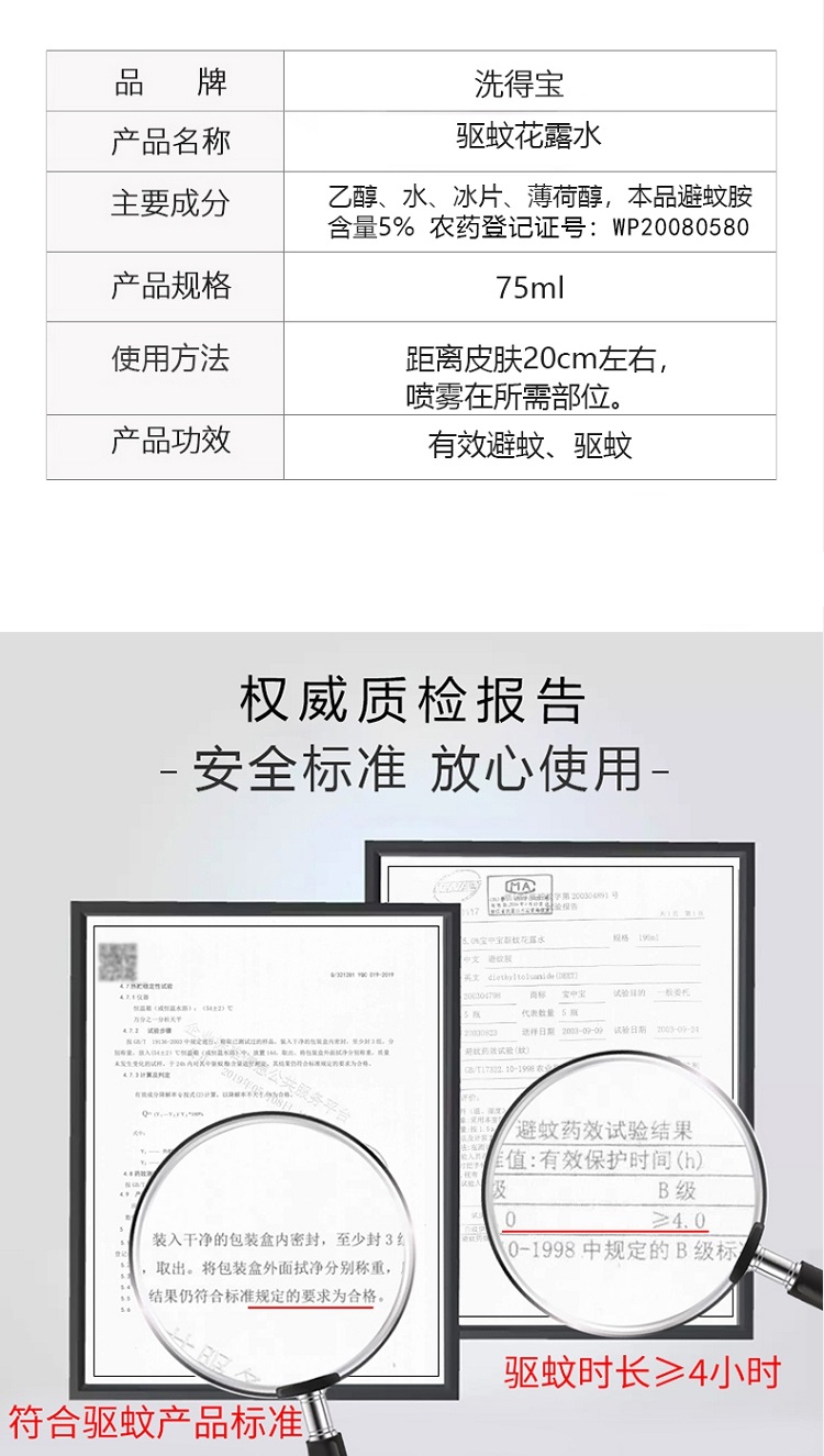 商品名称:洗得宝 抗菌驱蚊花露水 75ml (单位:瓶)