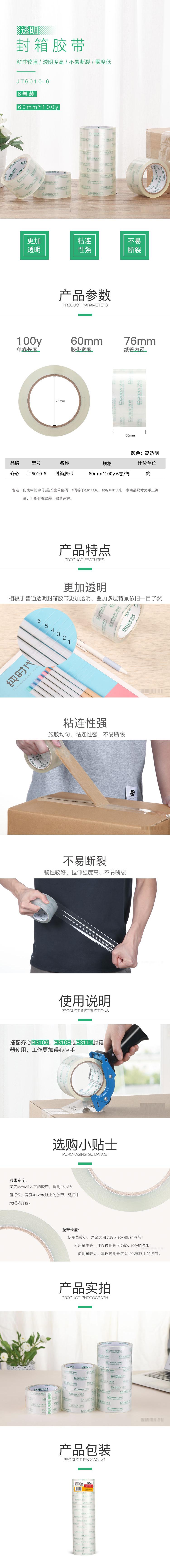 齐心 JT6010-6 封箱胶带 60mm*100y 透明 6卷/筒 透明 单位:筒