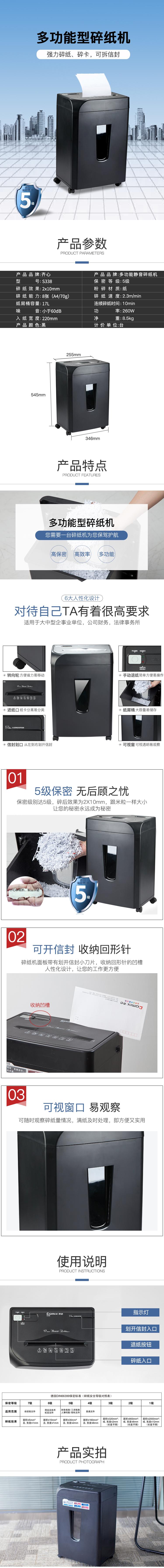 商品名称:齐心 S338 强力保密型碎纸机 黑(单位:台)