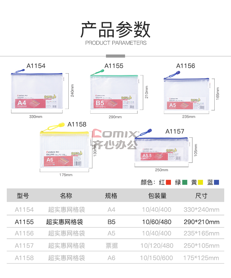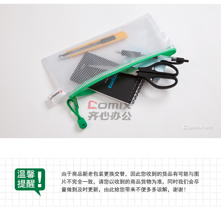 商品名称:齐心 A1155 B5 网格拉链文件袋 配 单位:个