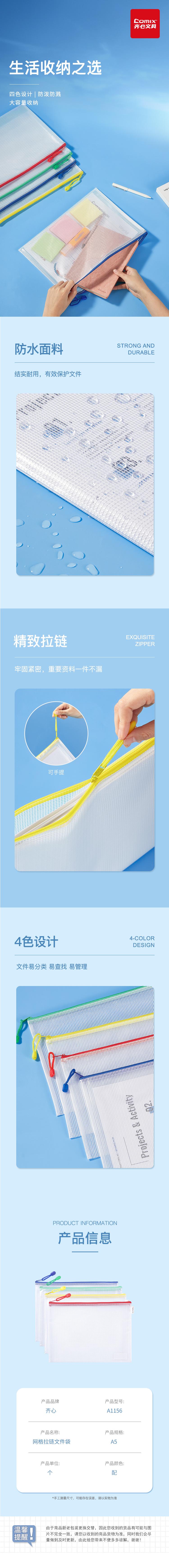 商品名称:齐心 A1156 网格拉链袋 A5 配色 颜色随机 单位:个