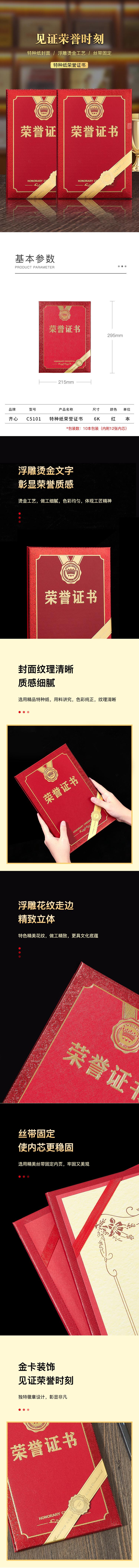 商品名称:齐心 C5101 特种纸荣誉证书 6K 红色 单位:本