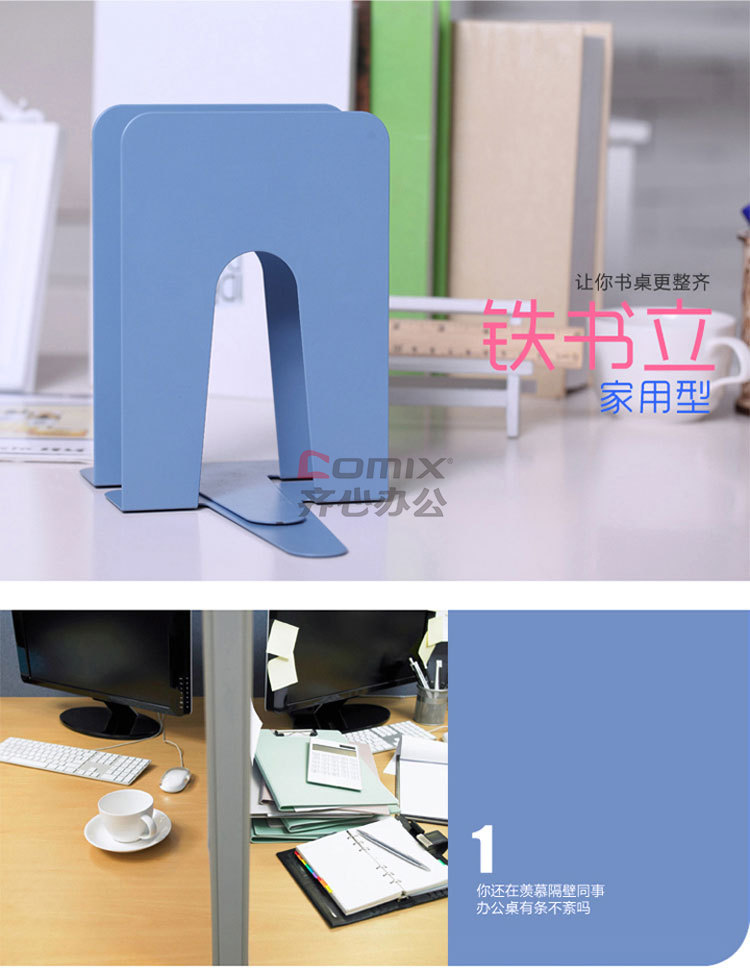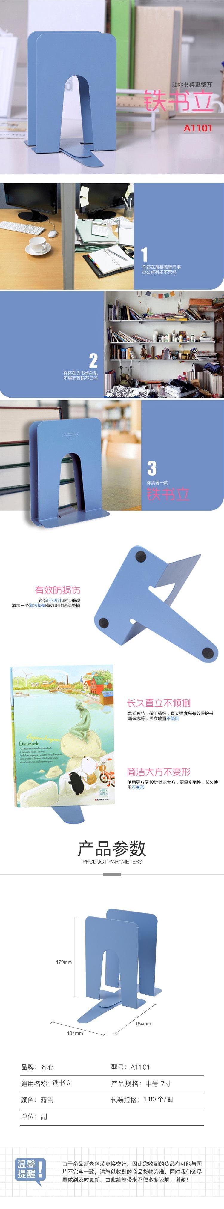 商品名称:齐心 A1101 铁书立 中号 179mm 蓝色 1副/套 单位:套