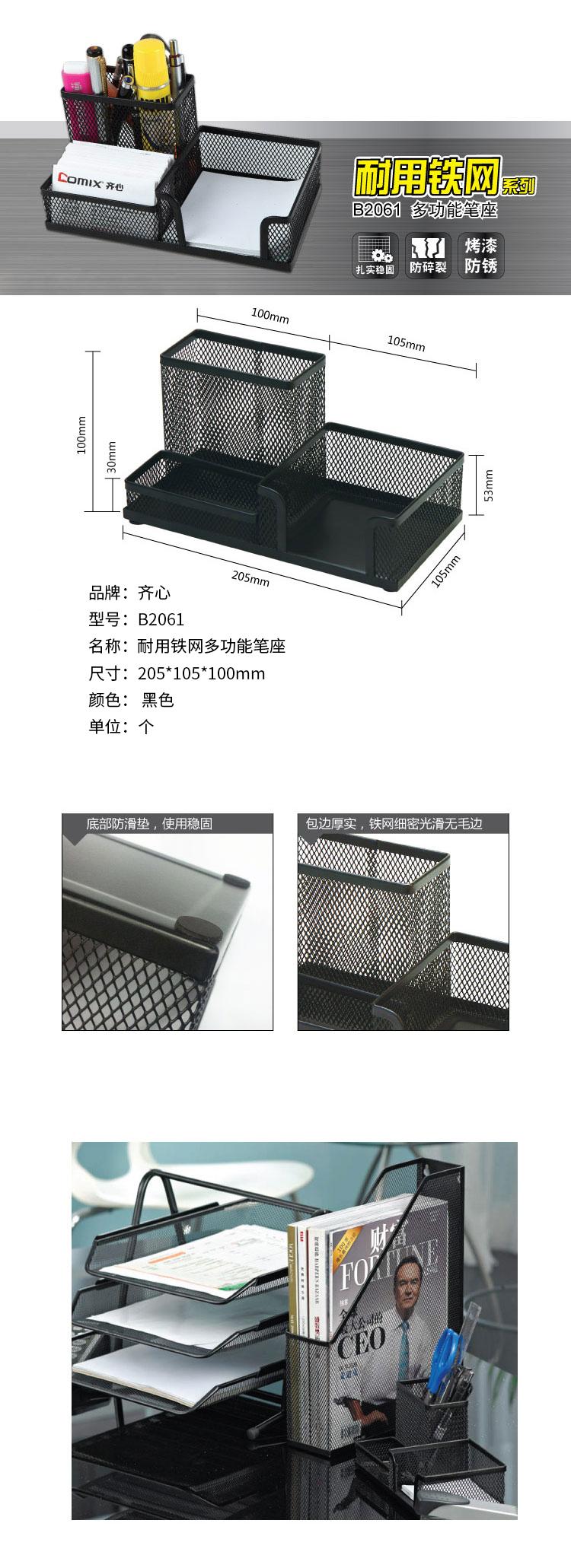齐心 B2061 耐用铁网多功能笔座 黑色 单位:个