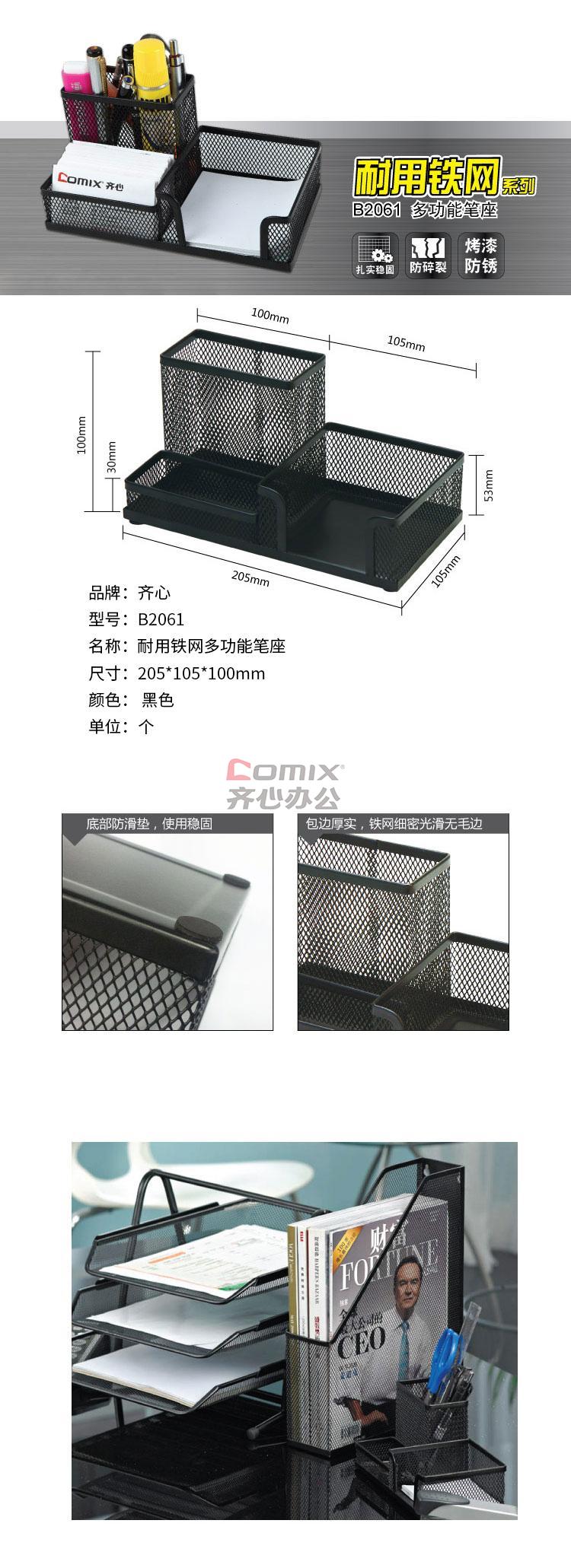 商品名称:齐心 B2061 耐用铁网多功能笔座 黑色 单位:个