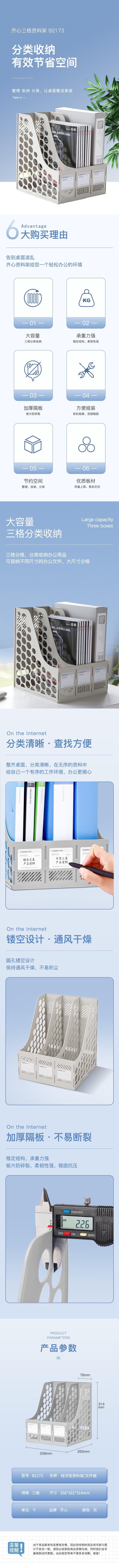 齐心 B2173 经济型资料架/文件框 三格 灰色 单位:个