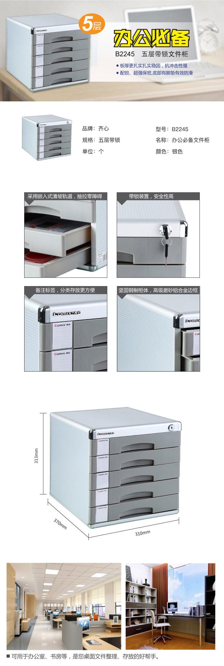 商品名称:齐心 B2245 塑胶文件柜 五层 带锁 银色 单位:个
