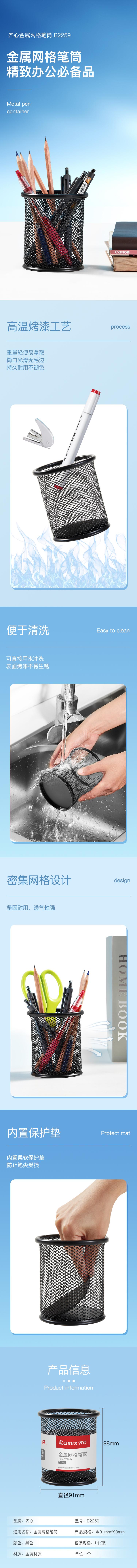 商品名称:齐心 B2259 金属圆形笔筒 黑色 单位:个
