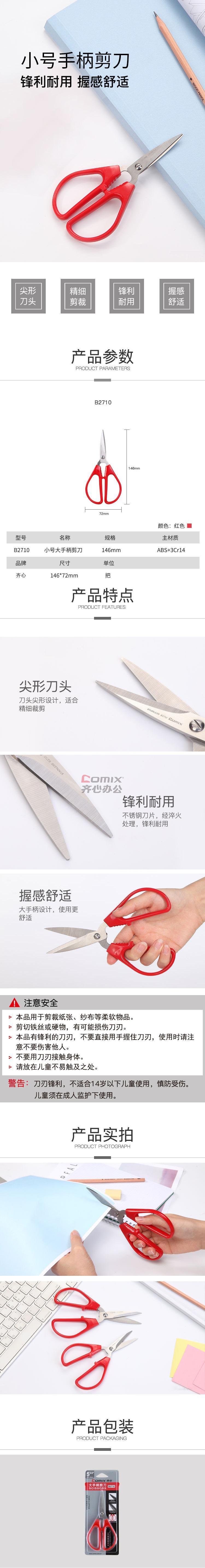 商品名称:齐心 B2710 小号大手柄剪刀 146mm 红色 单位:把