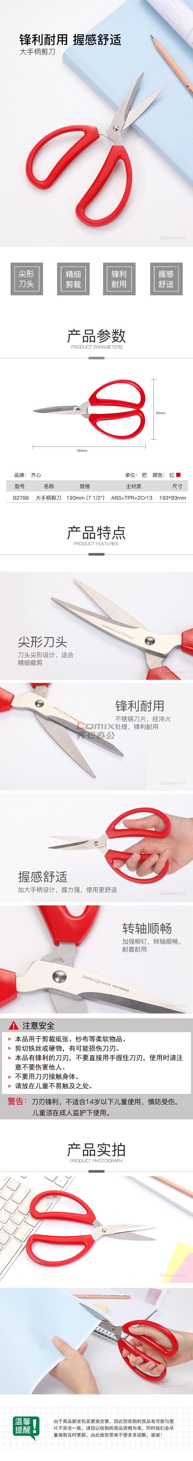 齐心 B2798 大号大手柄剪刀 193mm 红色 单位:把