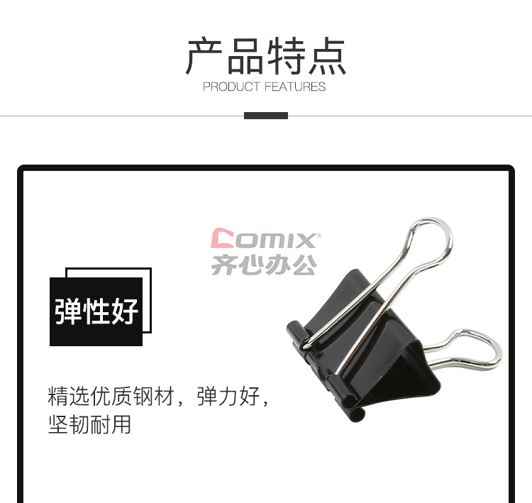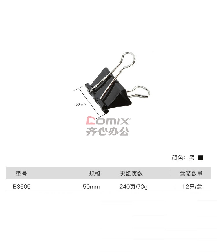 商品名称:齐心 B3605 长尾票夹 50mm 黑色 12只/盒 单位:盒