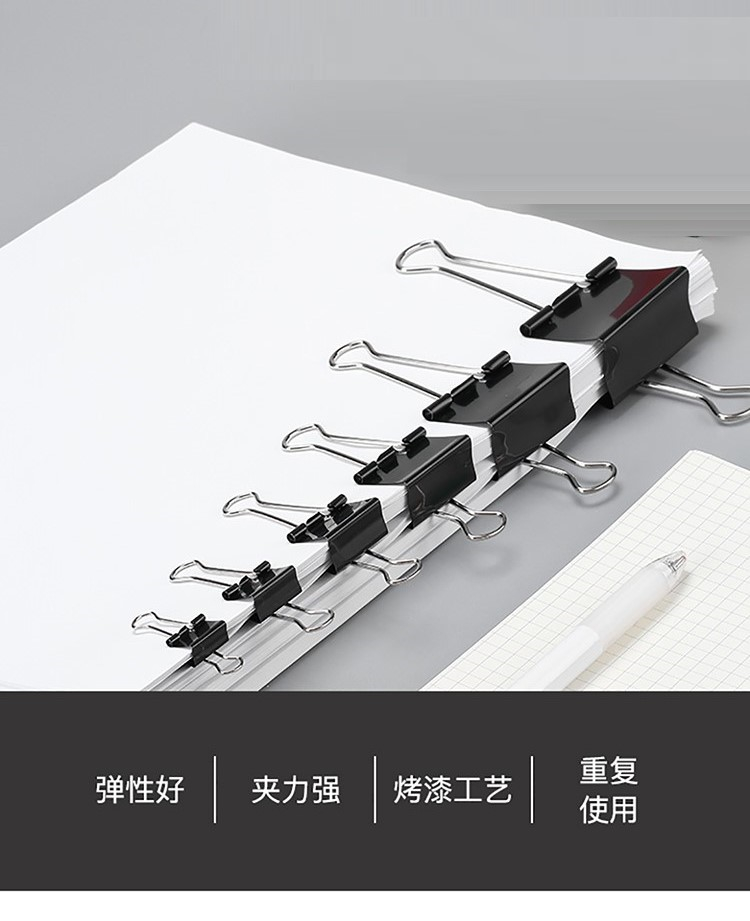商品名称:齐心 B3610 长尾票夹 15mm 黑色 12只/盒 单位:盒