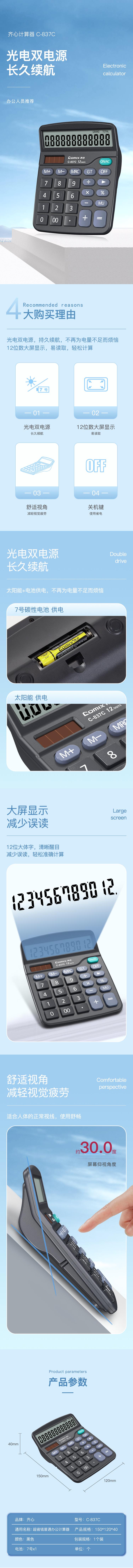 商品名称:齐心 C-837C 超省钱普通办公计算器 12位 黑色 单位:台