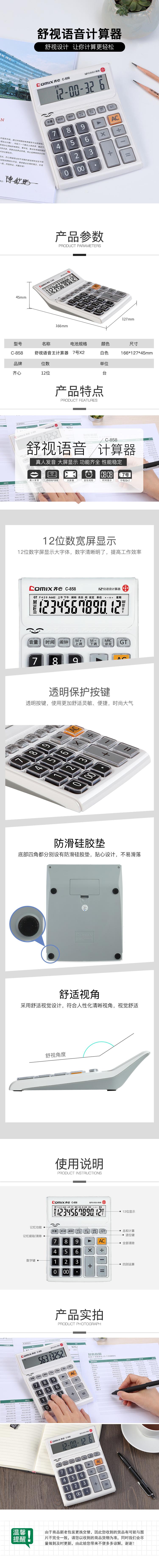商品名称:齐心 C-858 舒视语音王计算器 12位 166*127*45mm 白色 单位:台