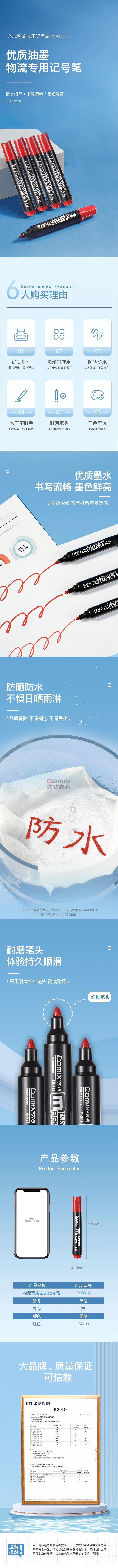 商品名称:齐心 MK818 物流专用圆头记号笔 2.0mm 红色 单位:支