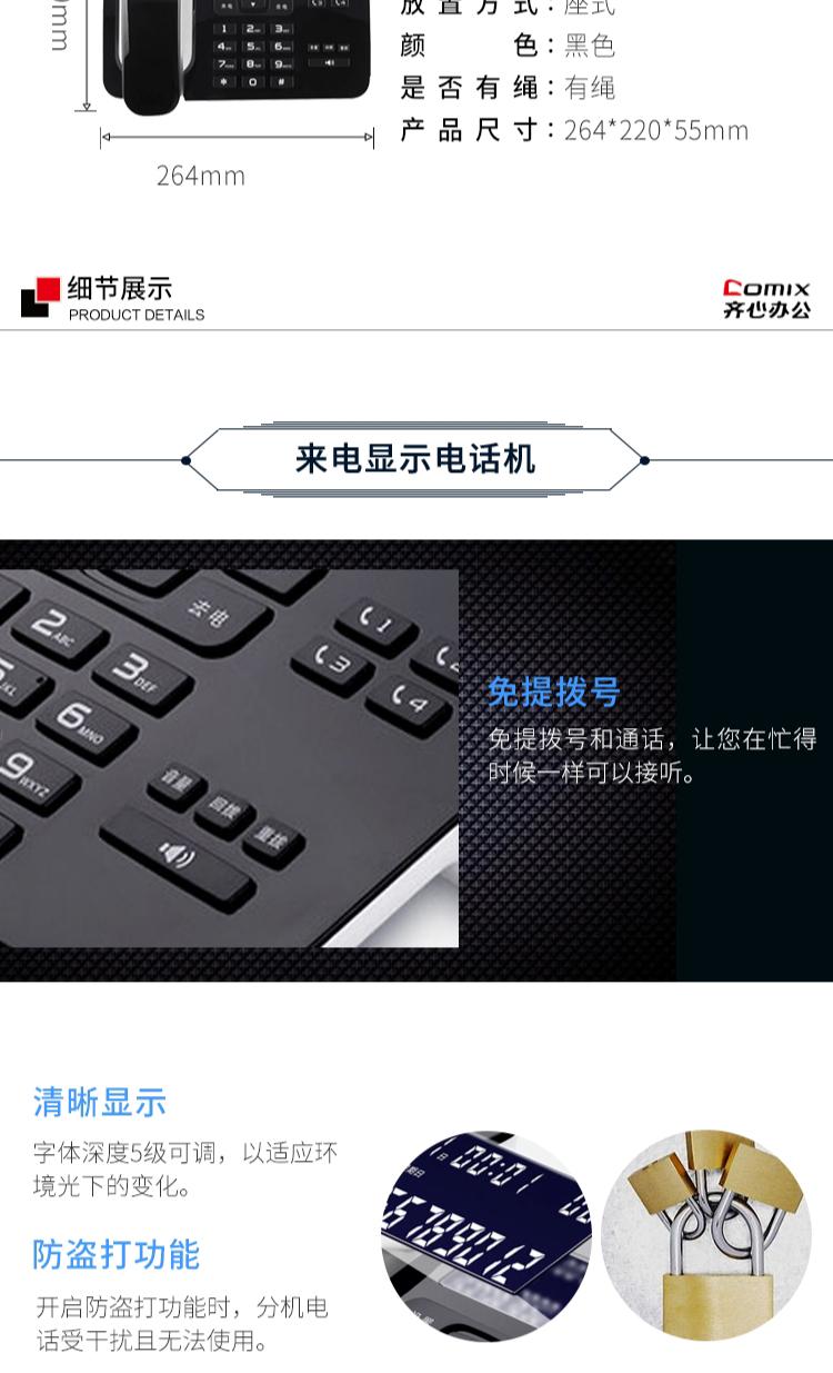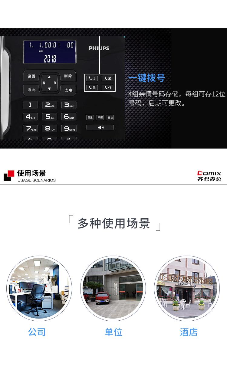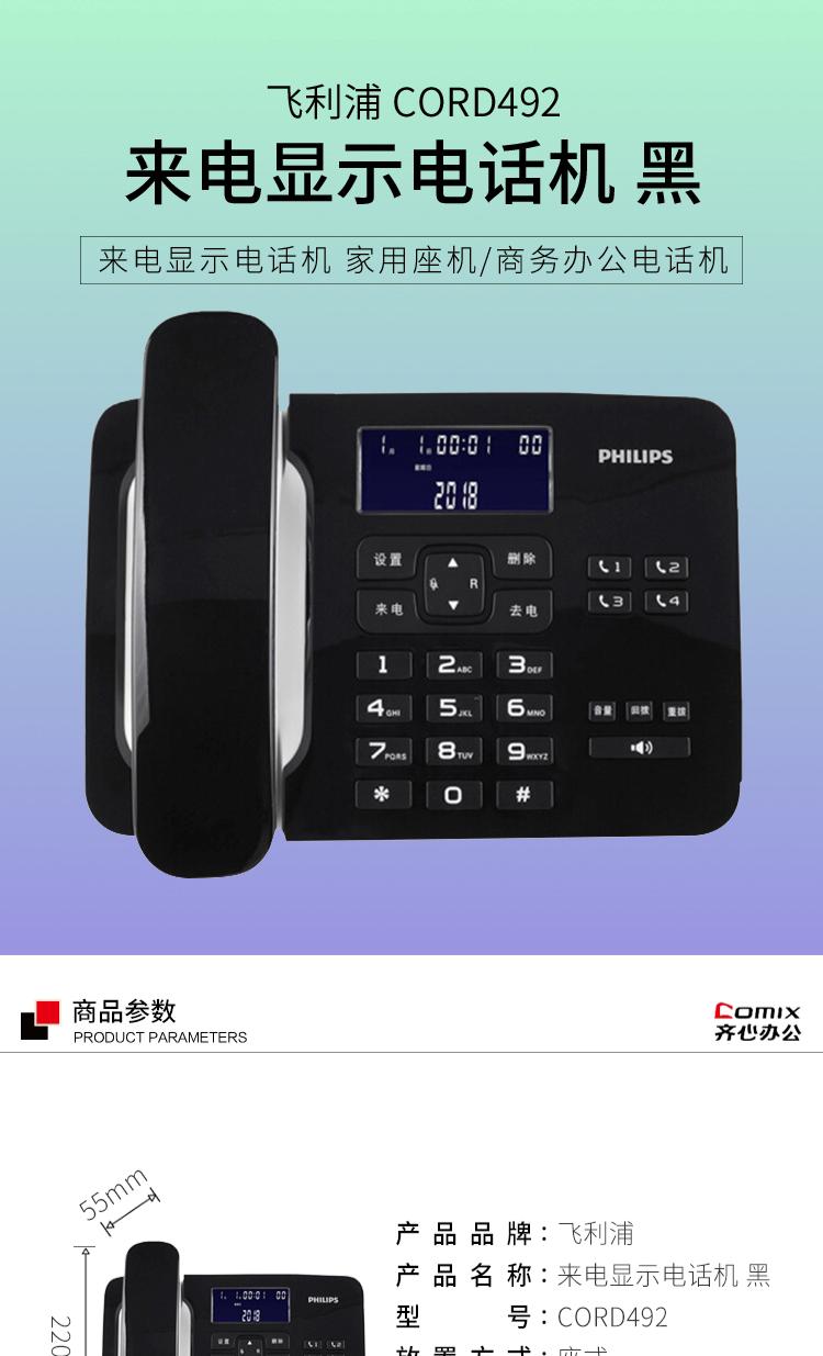 商品名称:飞利浦 CORD492 来电显示电话机 黑色 单位:台