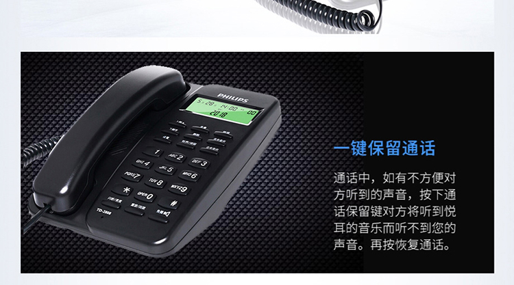 商品名称:飞利浦 TD-2808 来电显示电话机 黑色 单位:台