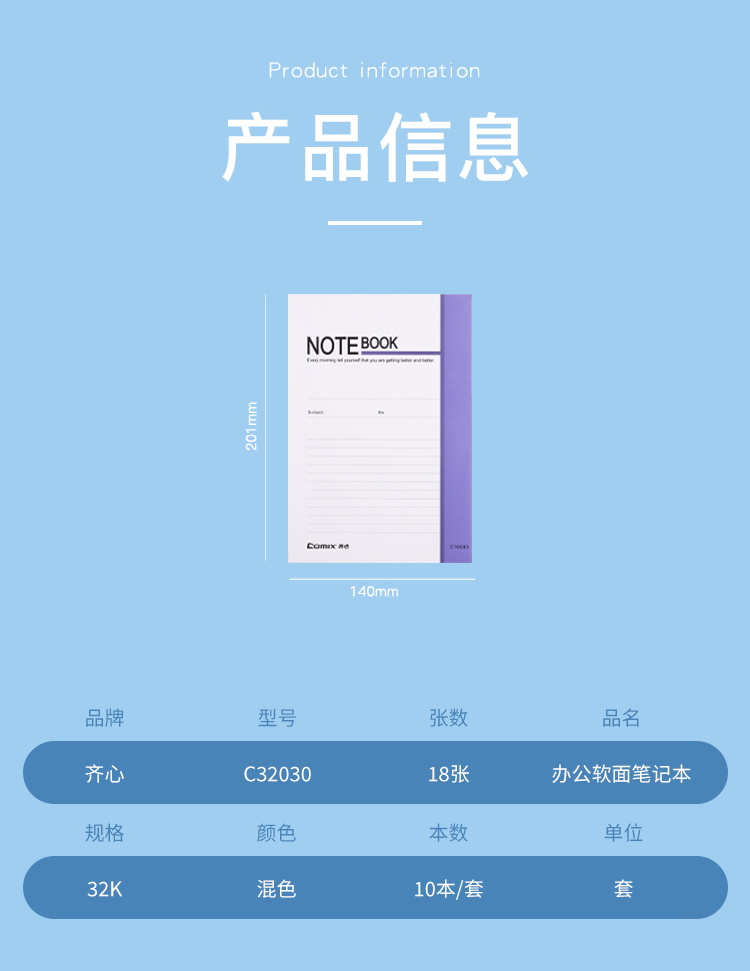 商品名称:齐心 C32030 软抄本 32K 18张 配色 颜色随机 单位:本