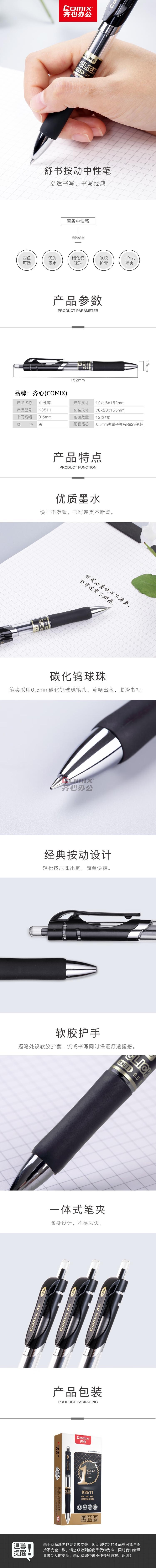 齐心 K3511 舒写按动中性笔 0.5mm 黑色 单位:支