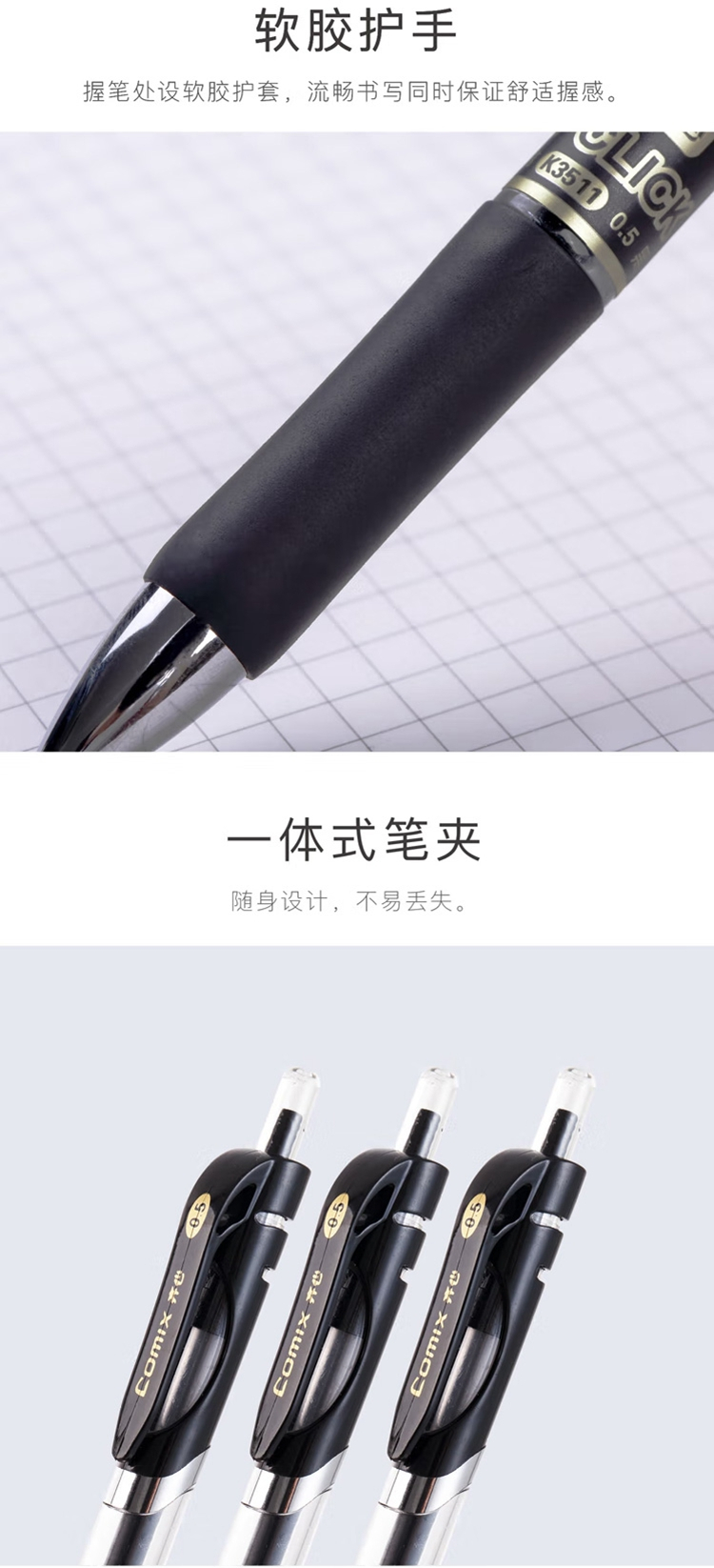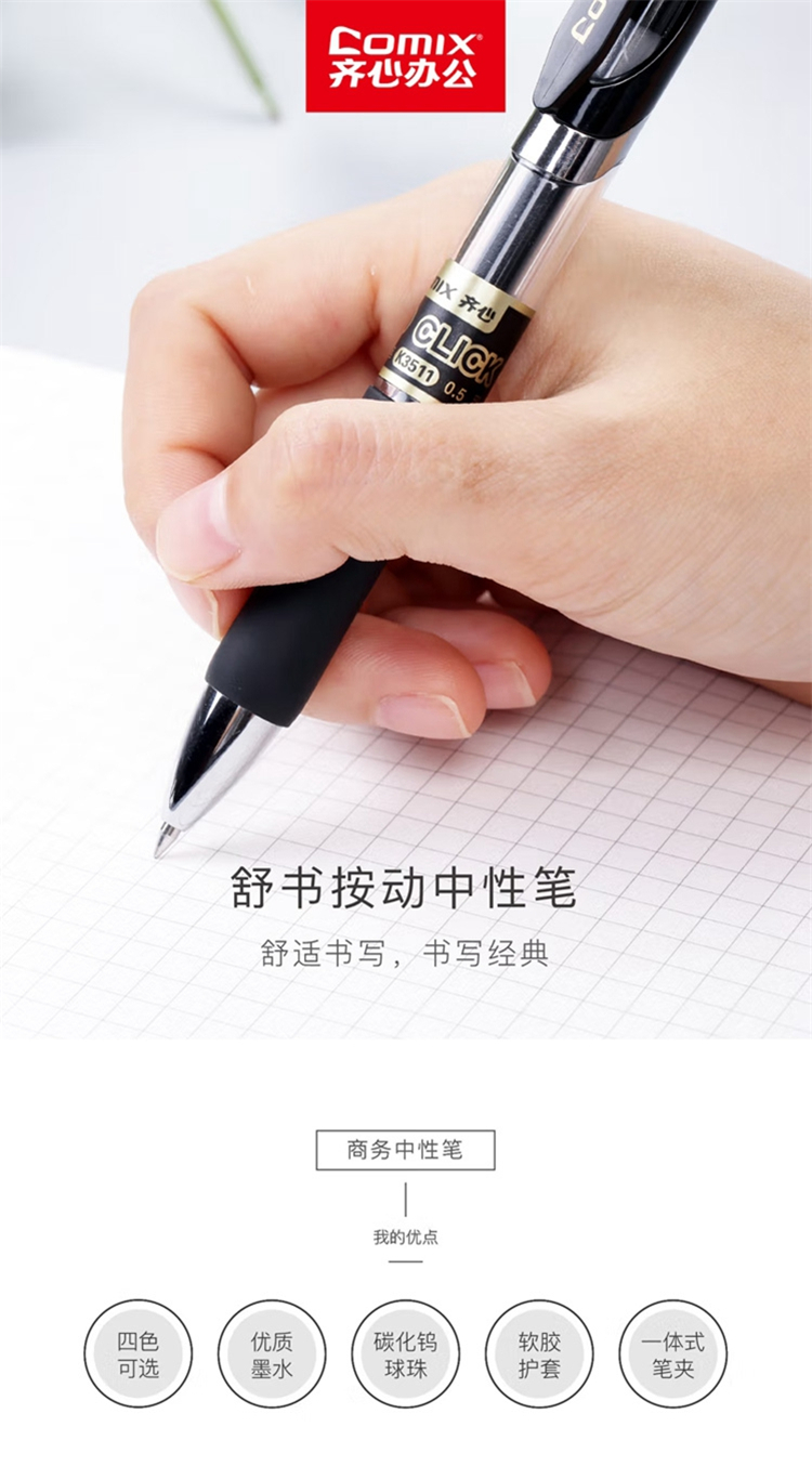 商品名称:齐心 K3511 舒写按动中性笔 0.5mm 黑色 单位:支