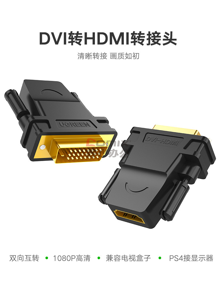商品名称:绿联 20124 DVI公转HDMI母转 显示器转接头 黑色