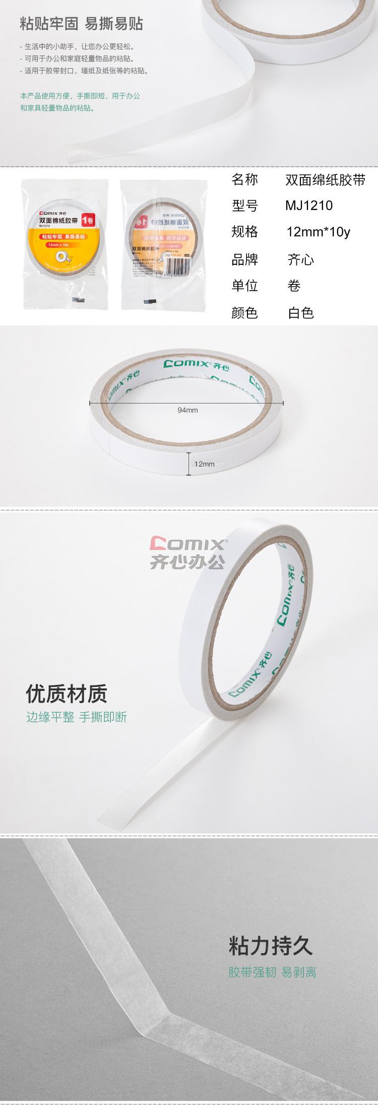 商品名称:齐心 MJ1210 双面棉纸胶带 12mm*10y 白色 1卷/袋 单位:袋