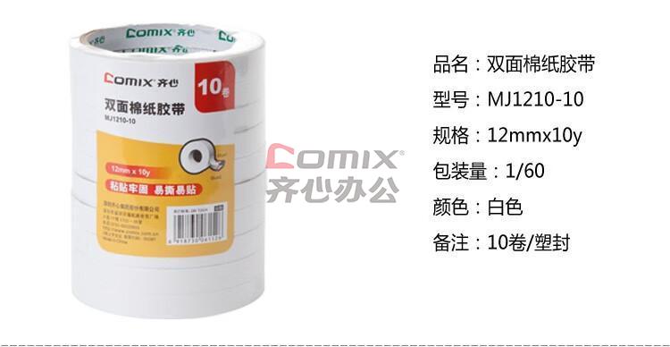 商品名称:齐心 MJ1210-10 双面棉纸胶带 12mm*10y 白色 10卷/筒 单位:筒
