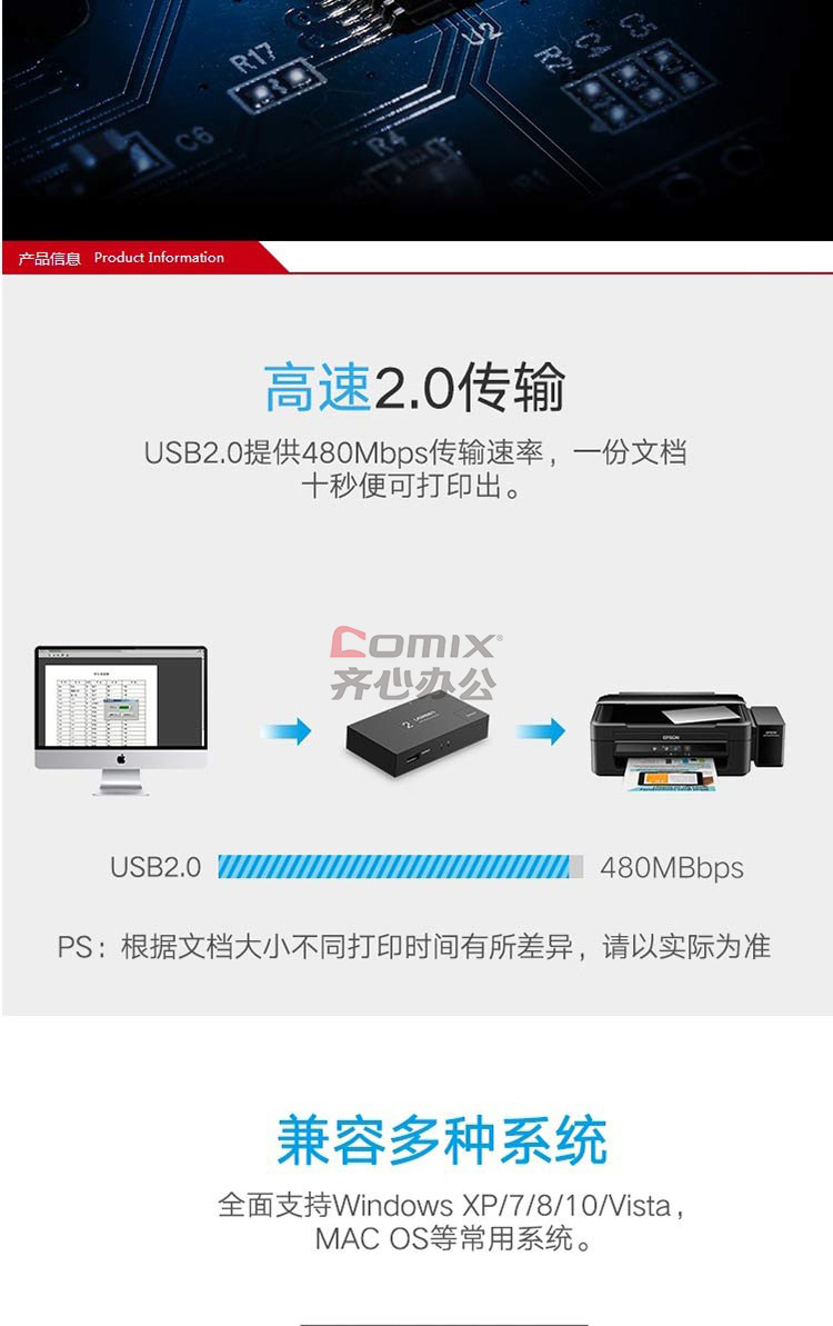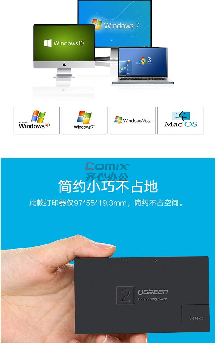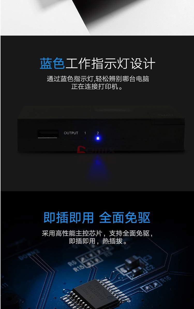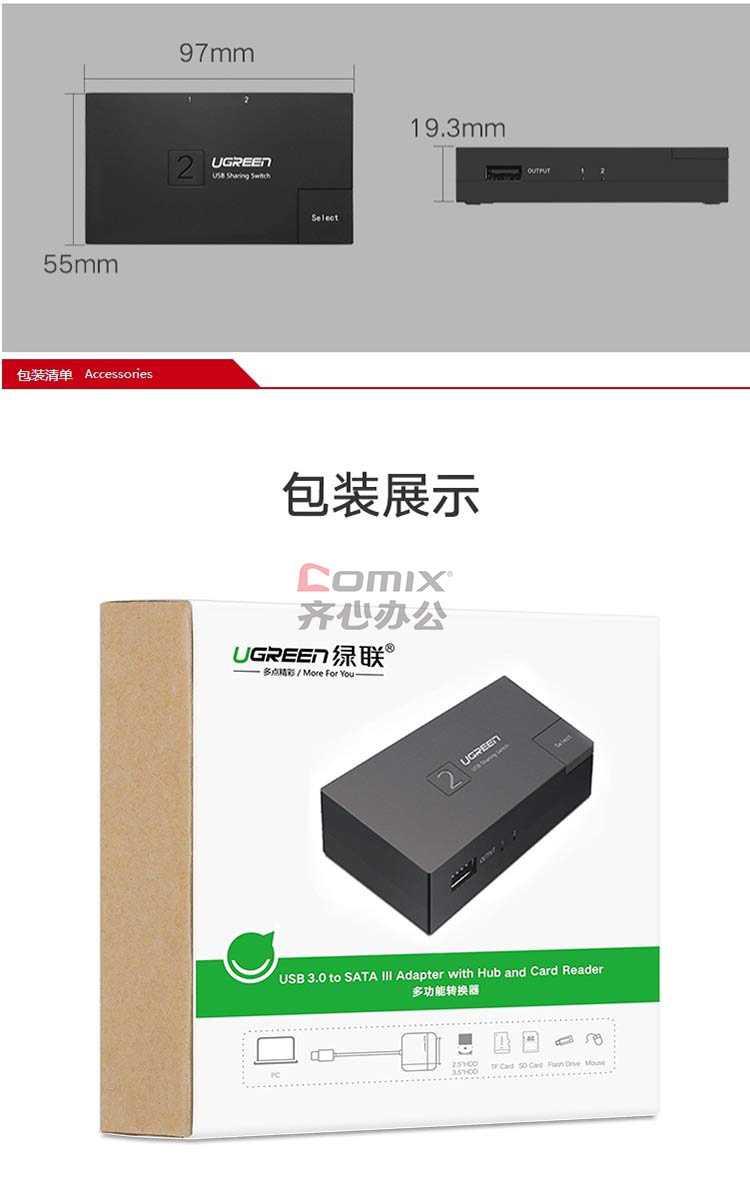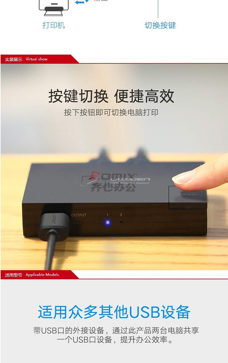 商品名称:绿联 30345 USB打印机共享器二进一出分屏器 单位:个 黑色