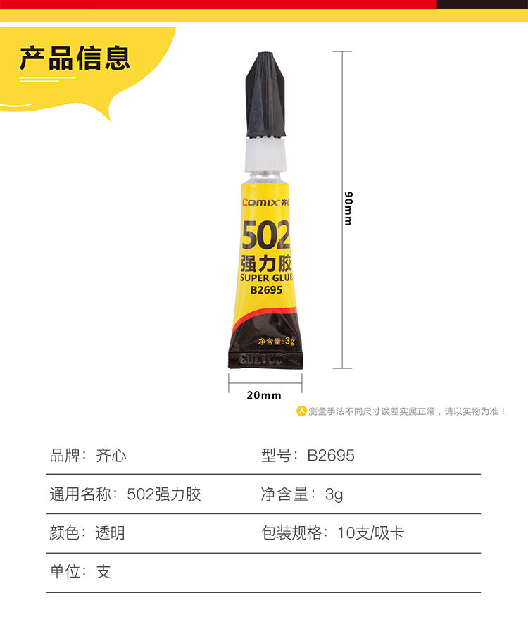 商品名称:齐心 B2695 502强力胶 吸卡装 3g 透明 单位:支