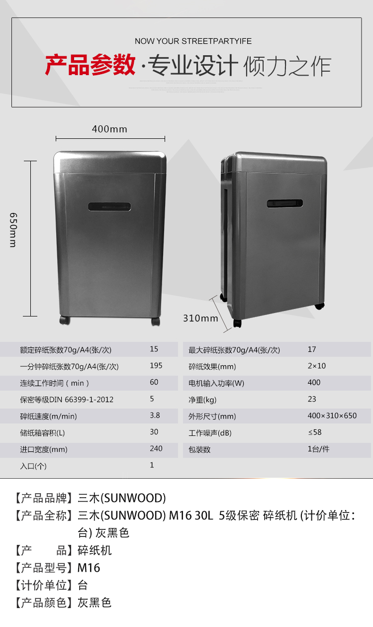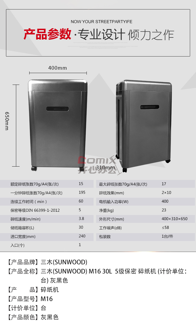商品名称:三木 M16 碎纸机 黑色(单位:台)