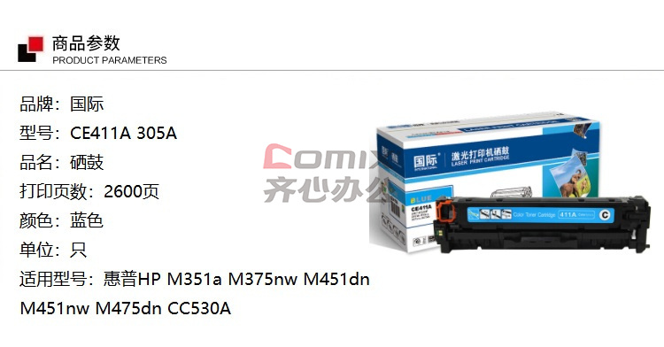 商品名称:国际 CE411A 硒鼓 蓝色(适用HPM451dn/M451nw/M375nw/M475dn)(单位:个)