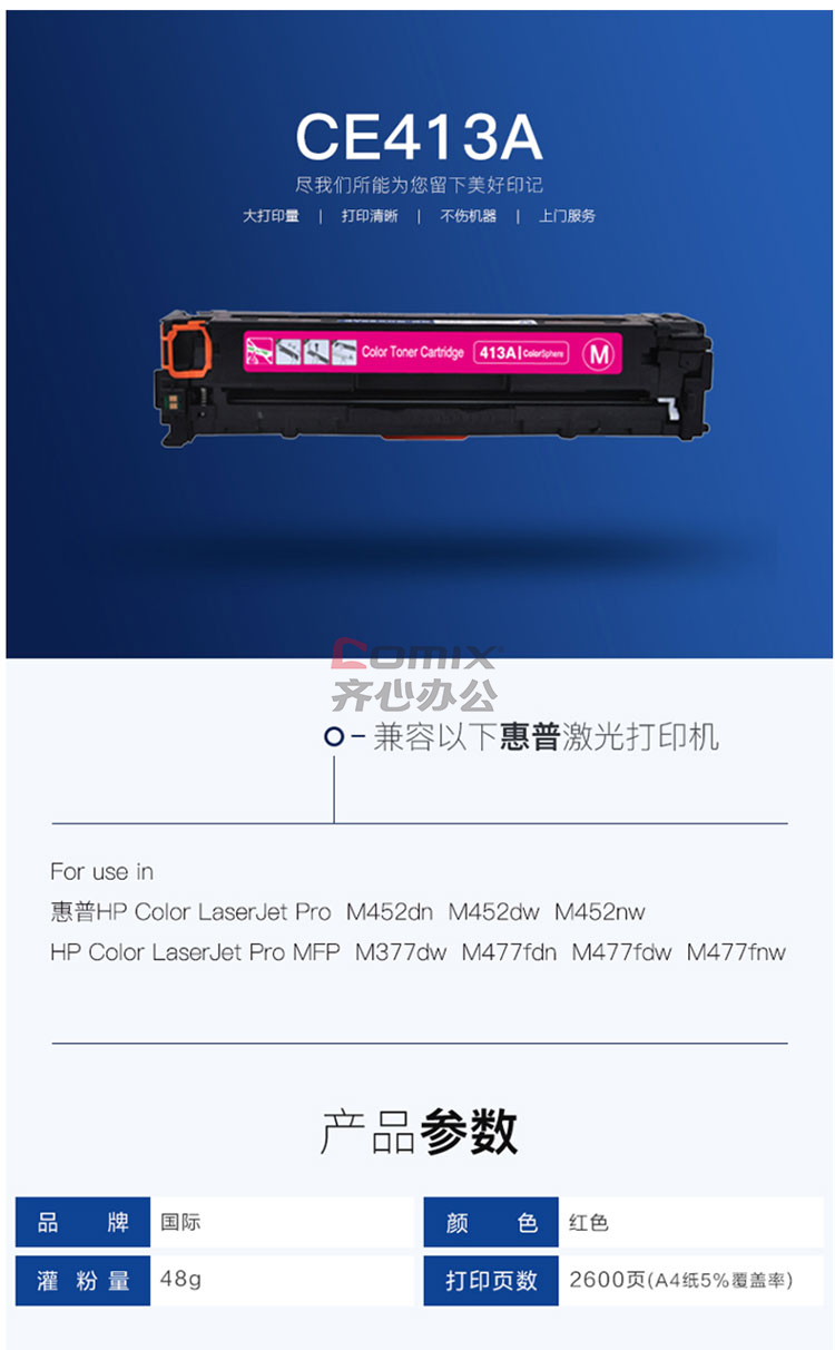 商品名称:国际 CE413A 硒鼓 红色(适用HPM451dn/M451nw/M375nw/M475dn)(单位:个)