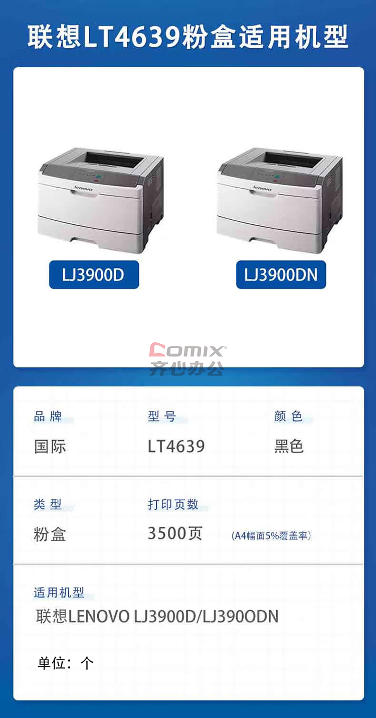 商品名称:国际 LT4639 粉盒 黑色(适用 Lenovo LJ3900D/LJ3900DN)(单位:个)