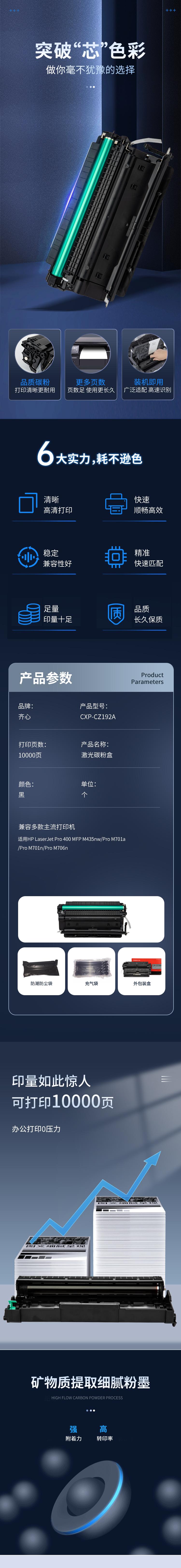 - 商品名称:齐心 CXP-CZ192A 激光碳粉盒 10000页 黑色 单位:个 适用:HP LaserJet Pro 400 MFP M435nw/Pro M701a/Pro M701n/Pro M706n