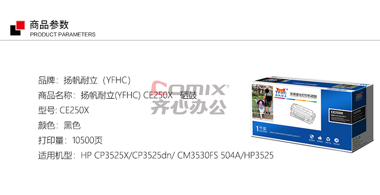 - 商品名称:扬帆耐立 CE250X 商专版 (带芯片)硒鼓 适用型号:惠普HP CP3525X CP3525dn CM3530FS 504A 惠普HP 3525(单位:支)黑色