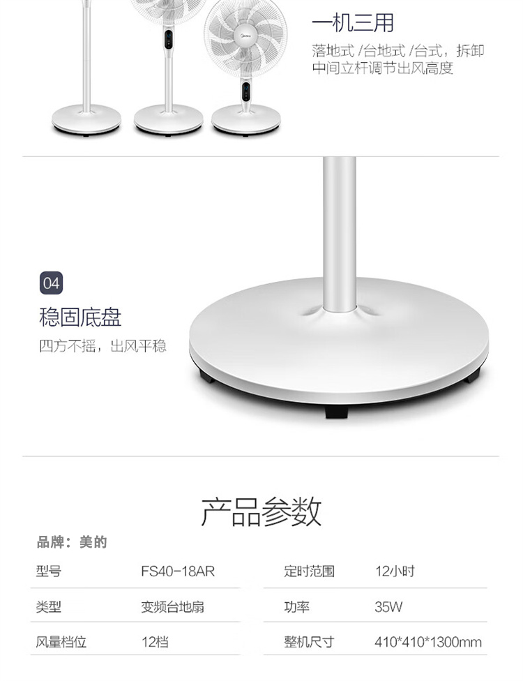 商品名称:美的 FS40-18AR 电风扇 银色 单位 台