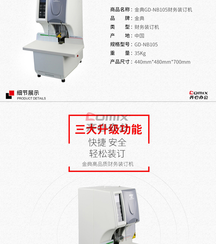 商品名称:金典 GD-NB105 全自动液晶显示屏装订机 黑白色 (单位:台)