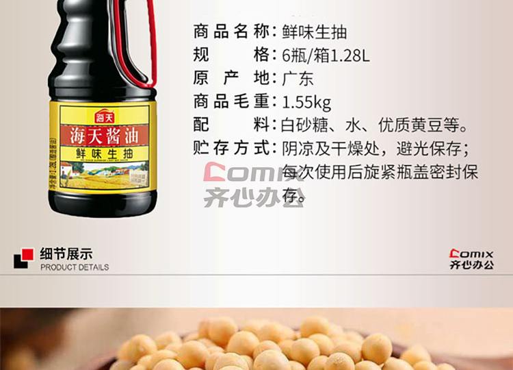 商品名称:海天 鲜味生抽 1.28L (6瓶/箱) 单位:瓶