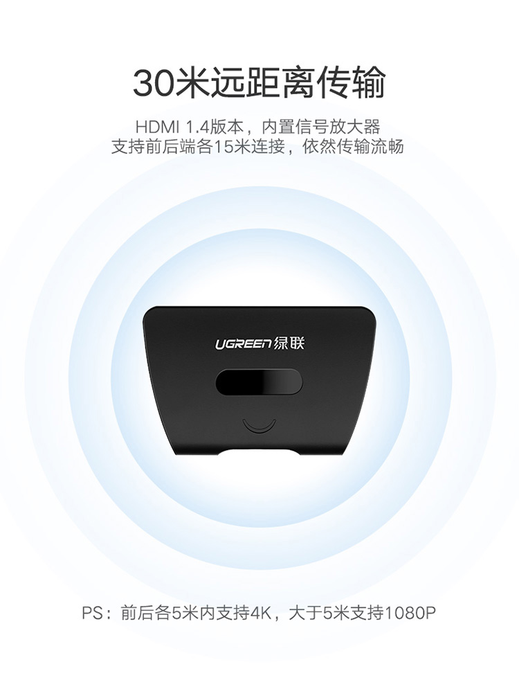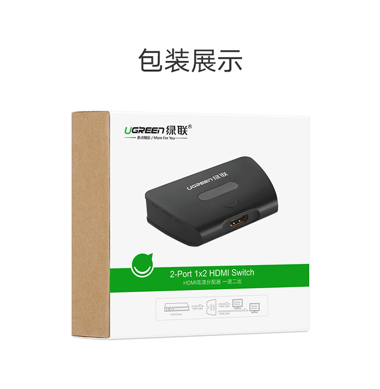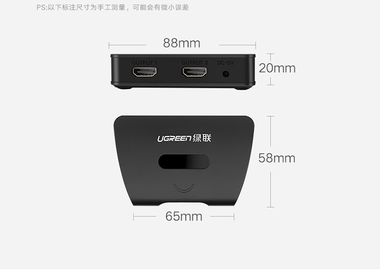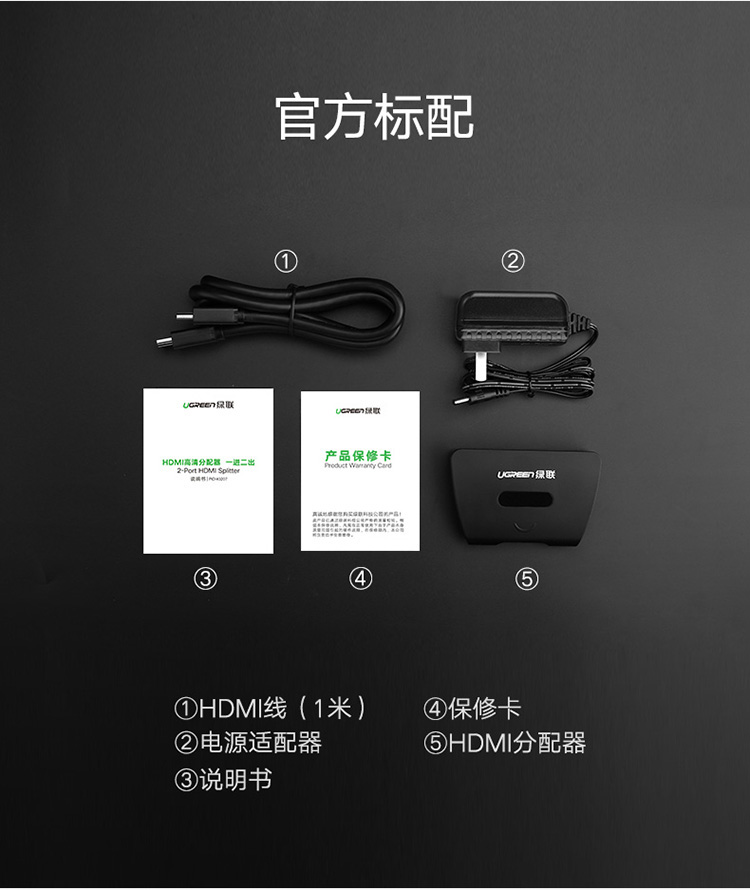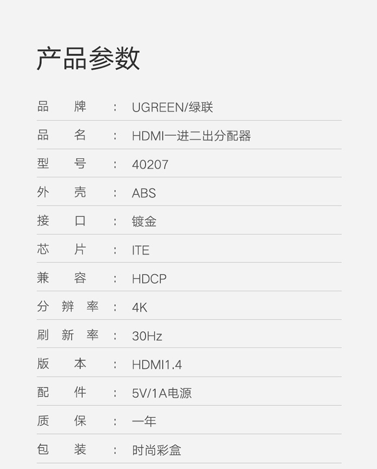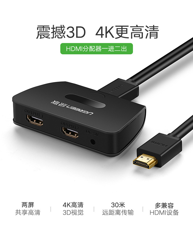 商品名称:绿联 40207 HDMI分配器一进二出高清分屏器 黑色(单位:件)