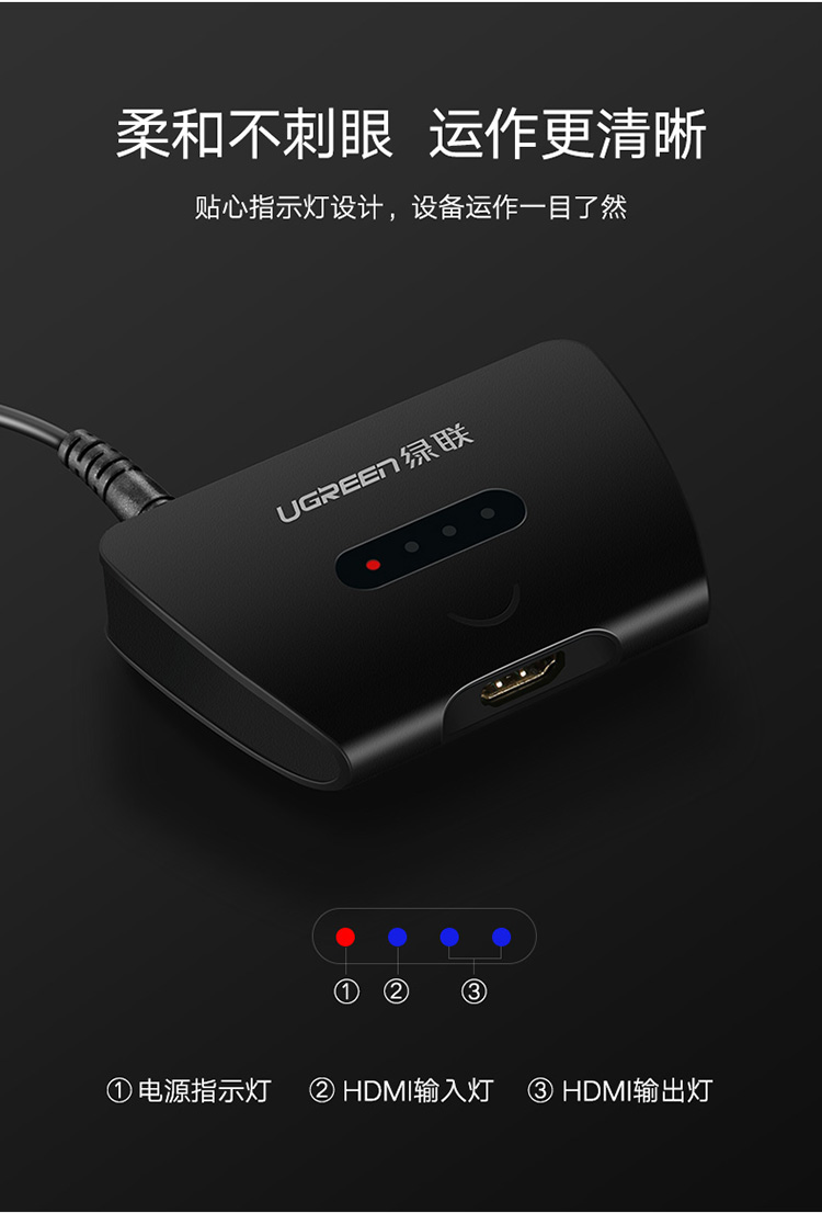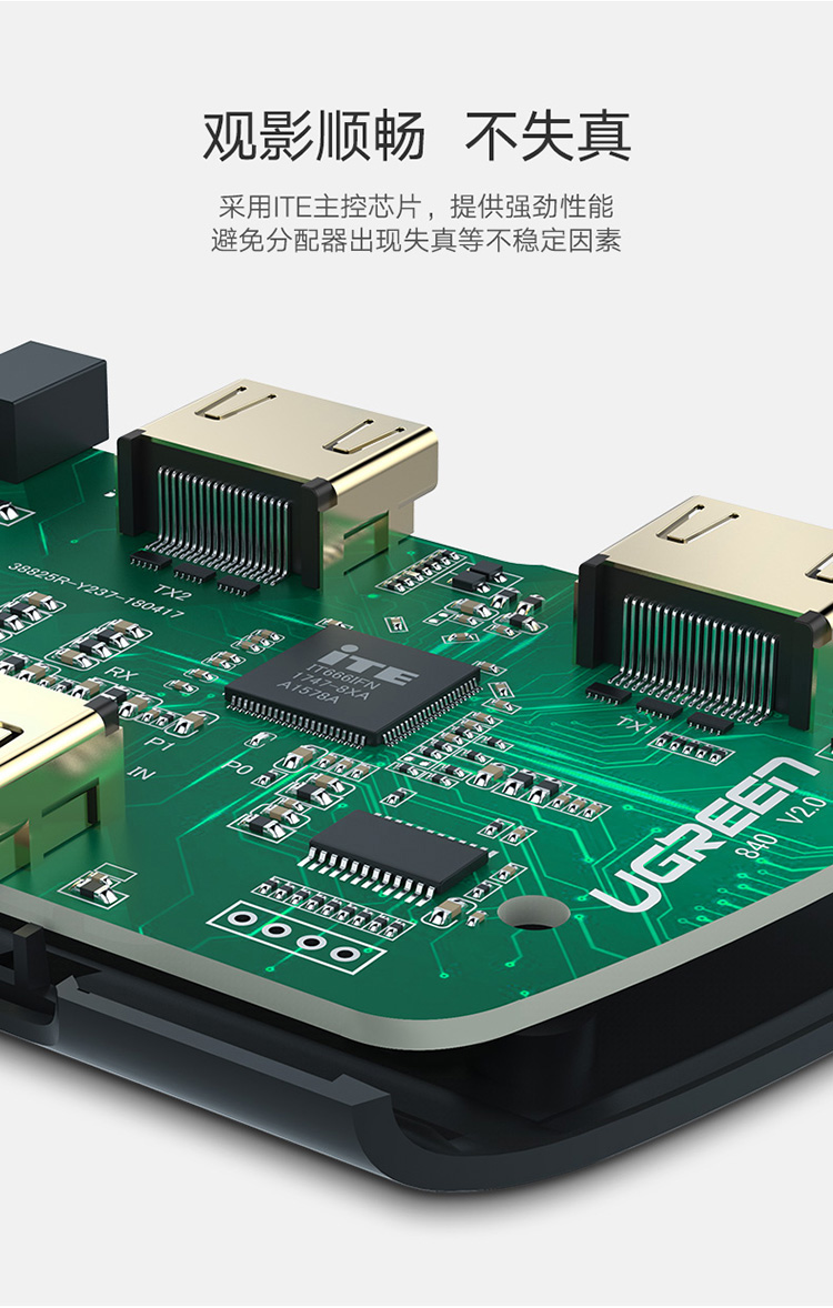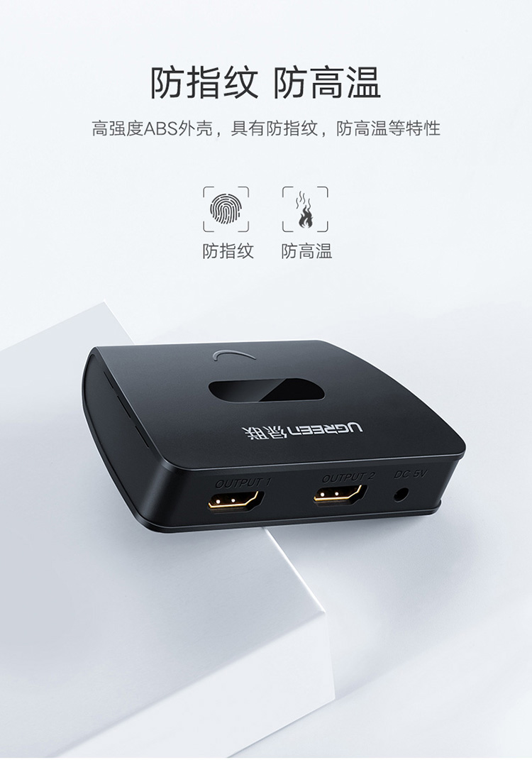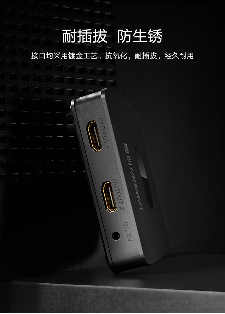 绿联 40207 HDMI分配器一进二出高清分屏器 黑色(单位:件)