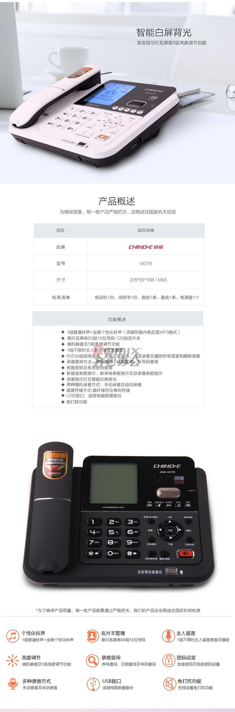 商品名称:中诺 G076 1100小时大容量录音电话机座机(单位:台)
