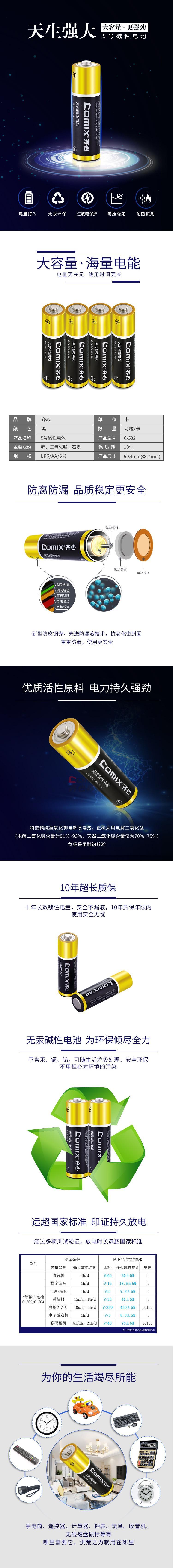 商品名称:齐心 C-502 5号碱性电池 2粒装 黑色 单位:卡