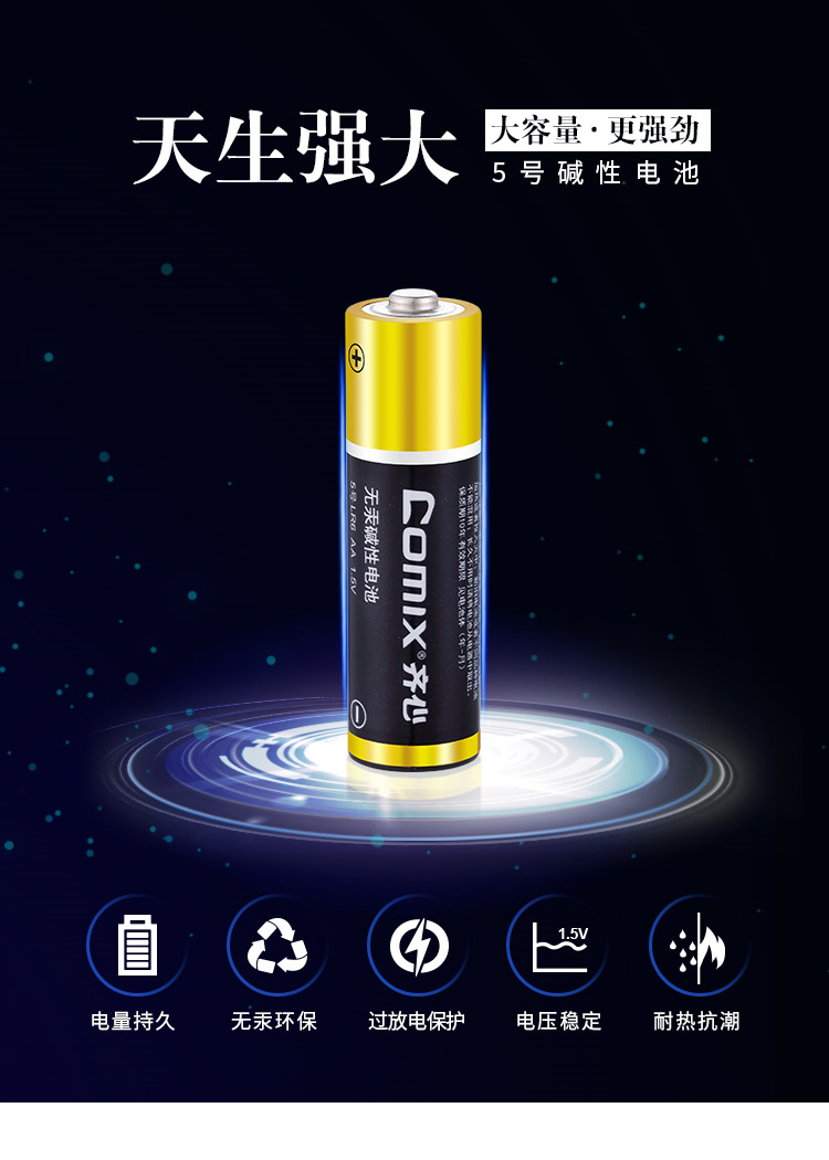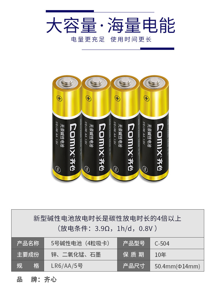 商品名称:齐心 C-504 5号碱性电池 4粒装 黑色 单位:卡