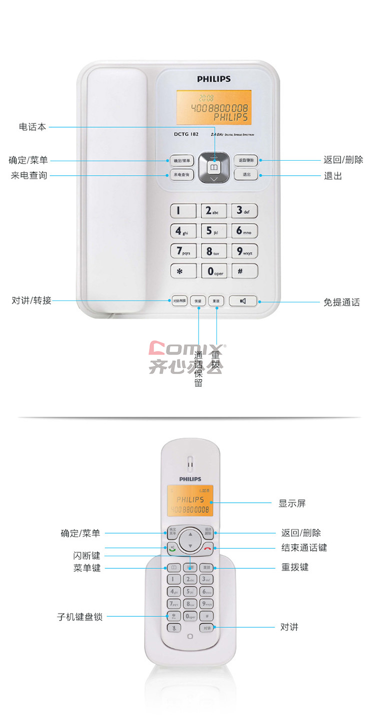 商品名称:飞利浦 DCTG182 电话机 黑色(单位:台)
