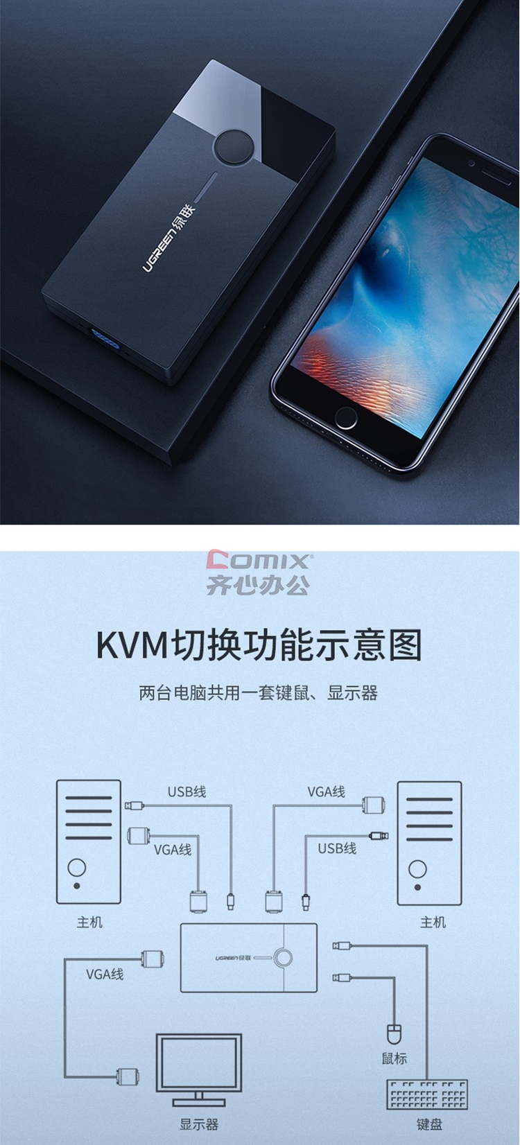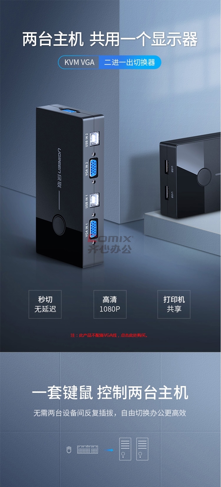 商品名称:绿联 30357 二进一KVM VGA视频切换器 黑色(单位:台)
