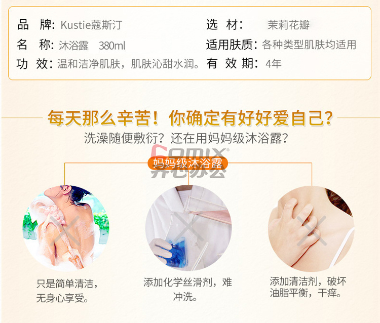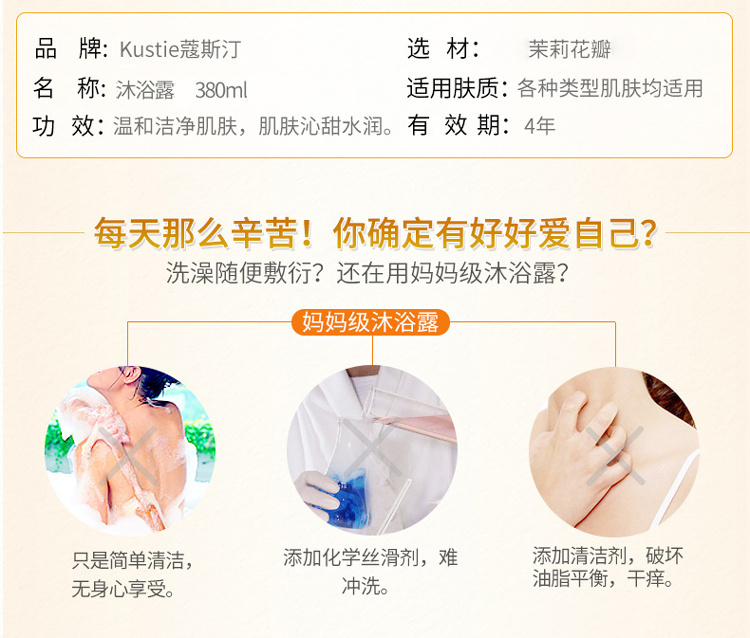 商品名称:蔻斯汀(Kustie) 茉莉花瓣 380ml 沐浴露 (计价单位:瓶)